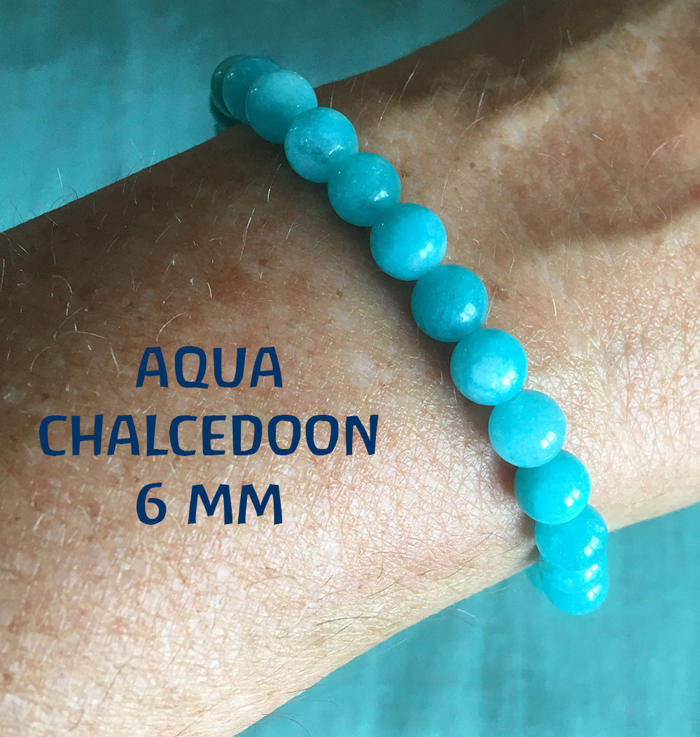 Armbandje van aqua Chalcedoon. Geregen op stevig elastiek.